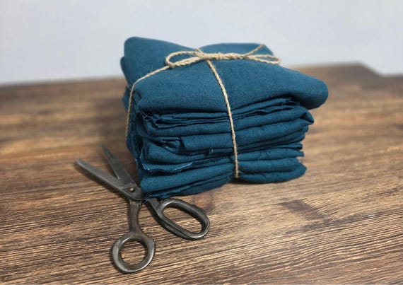 Blue with rust orange linen fabric, Natural fabric by the yard or meter, Washed flax sewing fabrics