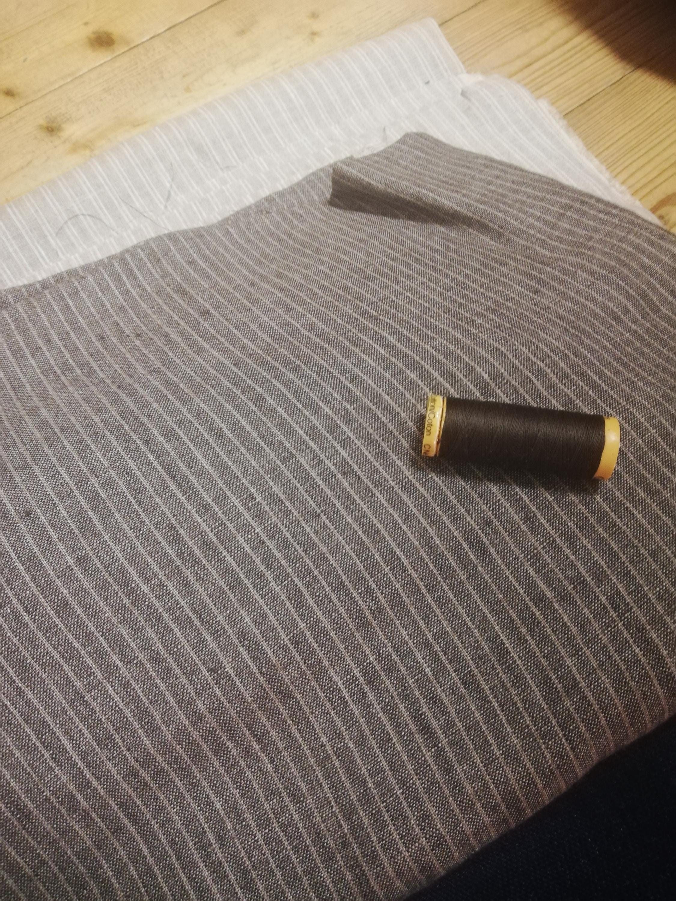 Brown with white stripes linen fabric with thin beige stripes by meters or yards. Medium weight 6.05 oz/yd² / 205 g/m² linen fabric. This fabric is perfect for sewing clothing, table linen, bed linen, curtains and other various interior decorations.