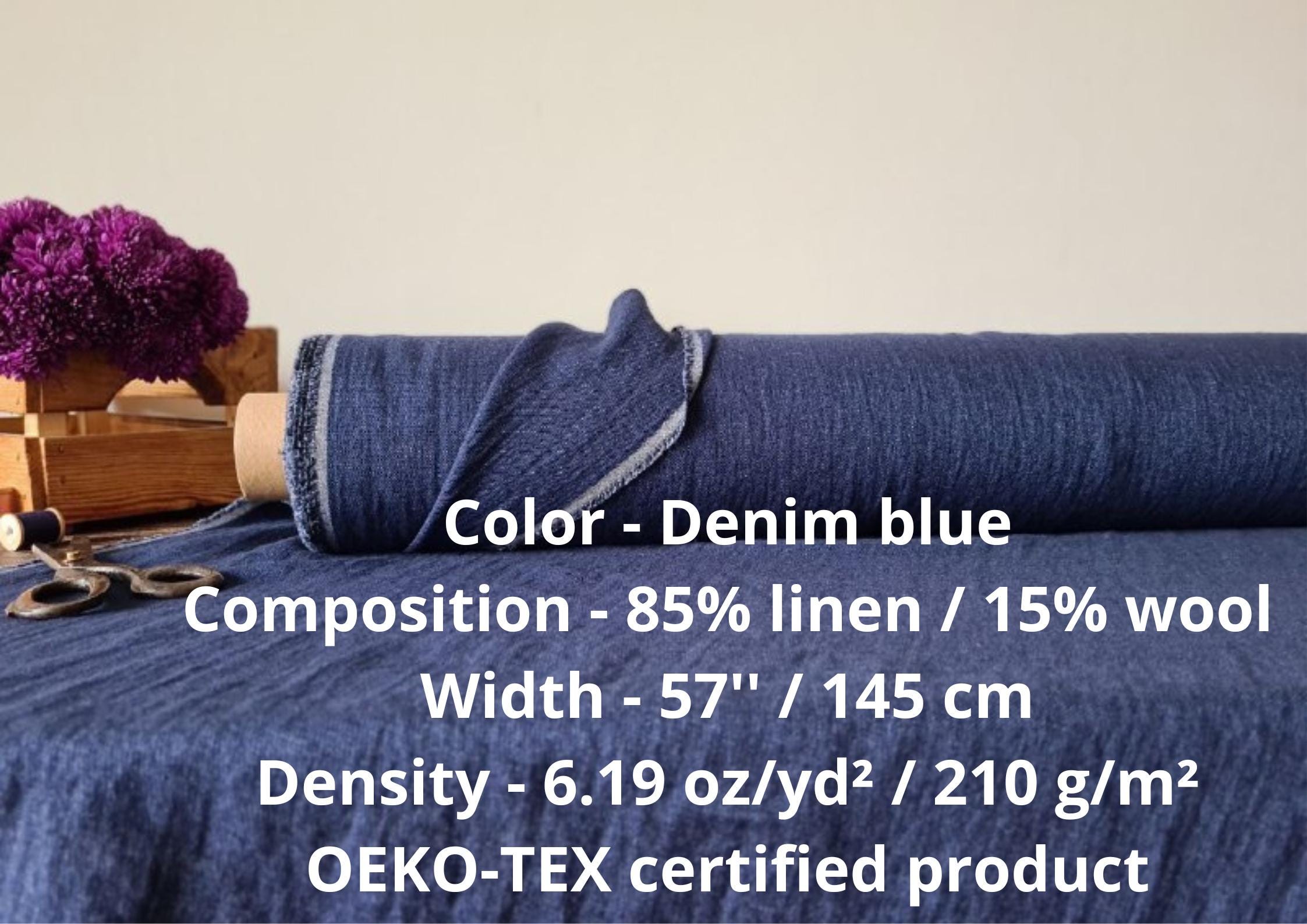 Denim blue melange blend fabric linen with wool by meters or yards. Medium weight 6.19 oz/yd² / 210 g/m² linen fabric. This fabric is perfect for sewing clothing, table linen, bed linen, curtains and other various interior decorations.