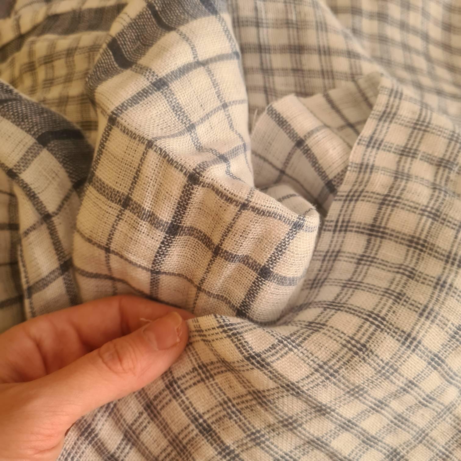 - Fabric is double sided - bigger checks (18x18mm or 0.7x0.7'') on the one side and smaller checks (10x10mm or 0.4x0.4'') on the other side