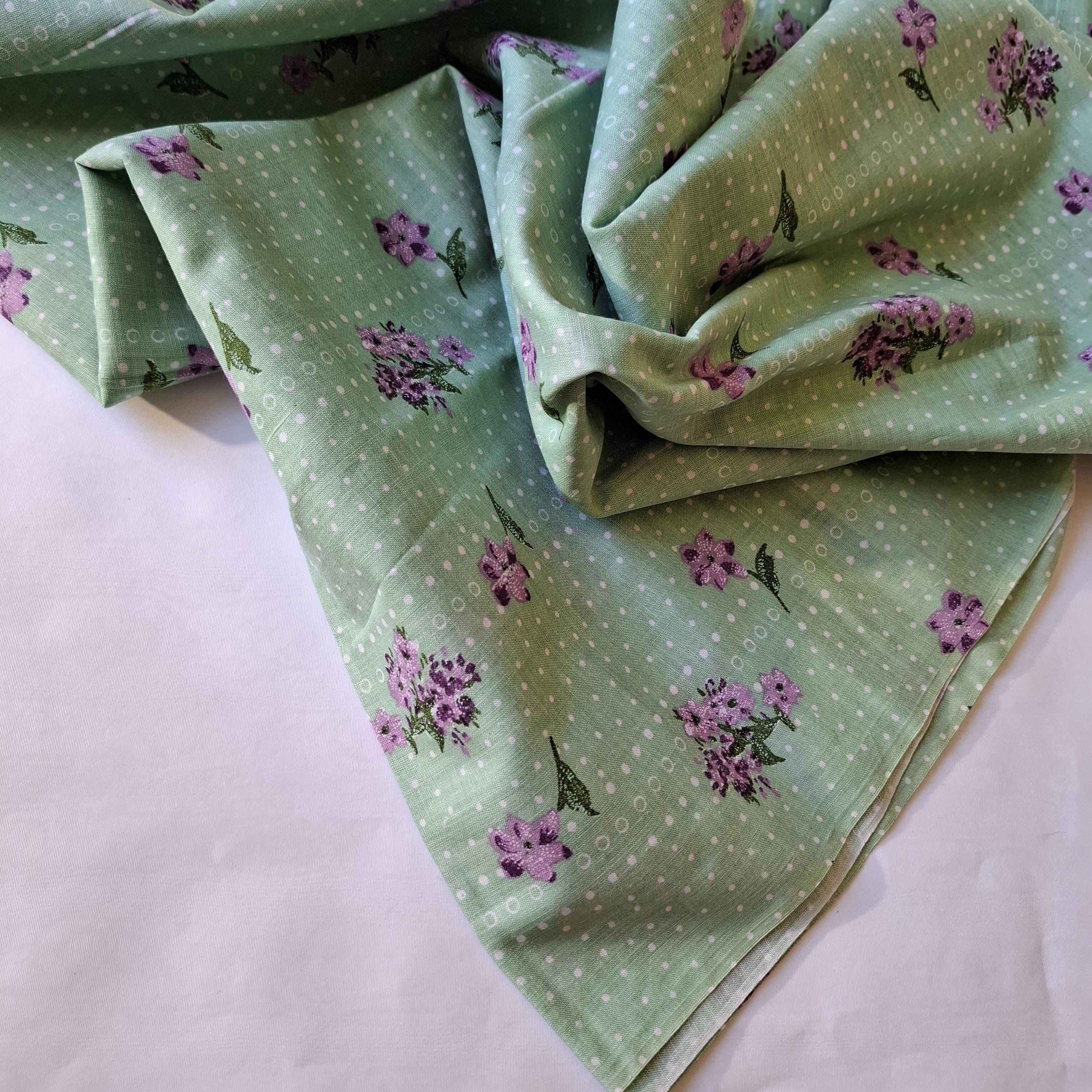 Vintage cotton fabric green color. Size of the piece 0.91 yards x 3.28 yards / 0.83 mx 3 m. Sew from cotton fabrics and enjoy its natural comfort.