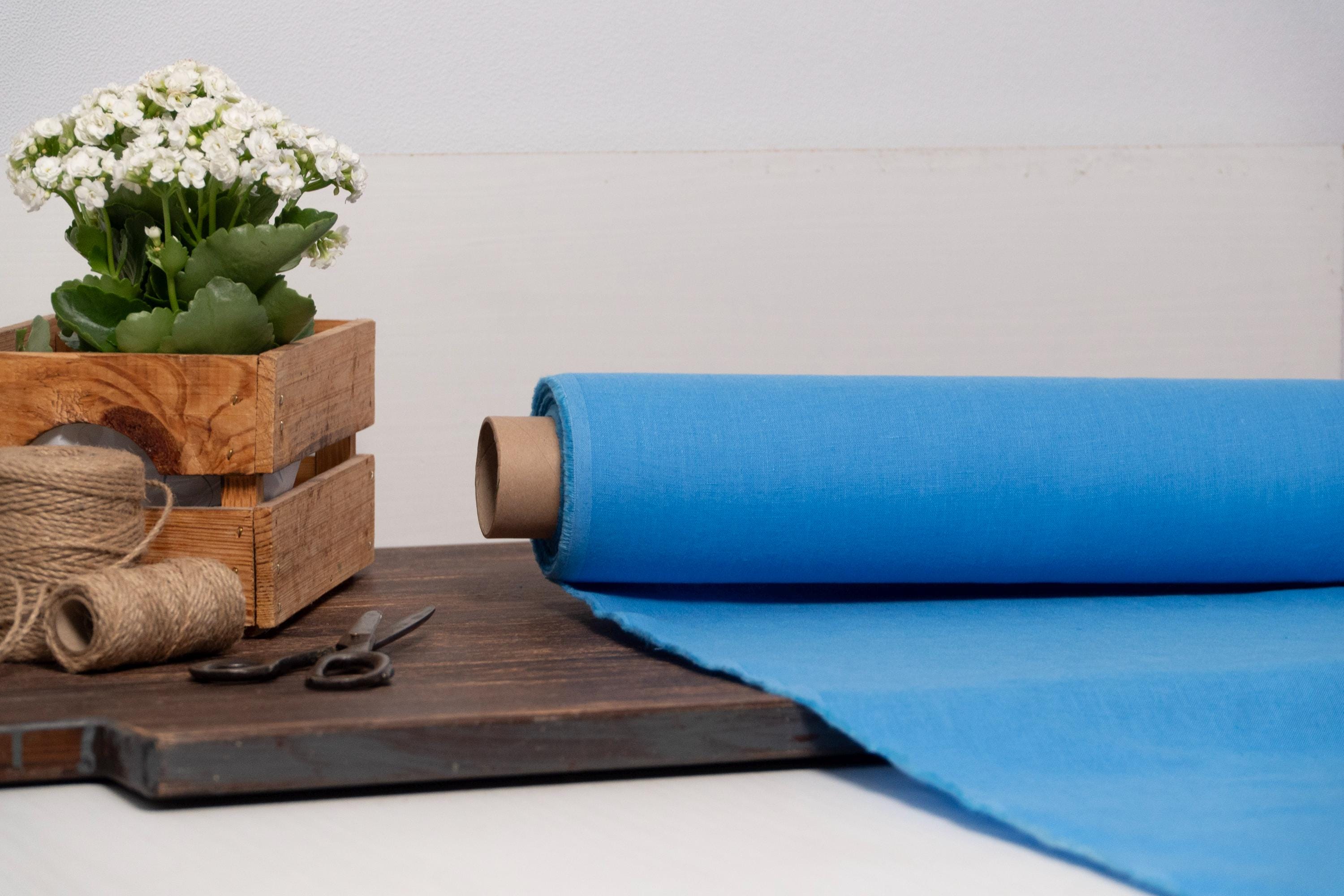 Bluebell blue linen fabric by meters or yards. Medium weight 6.05 oz/yd² / 205 g/m² linen fabric. This fabric is perfect for sewing kids and adult clothing, tablecloth, bedding, curtains and other various interior decorations.