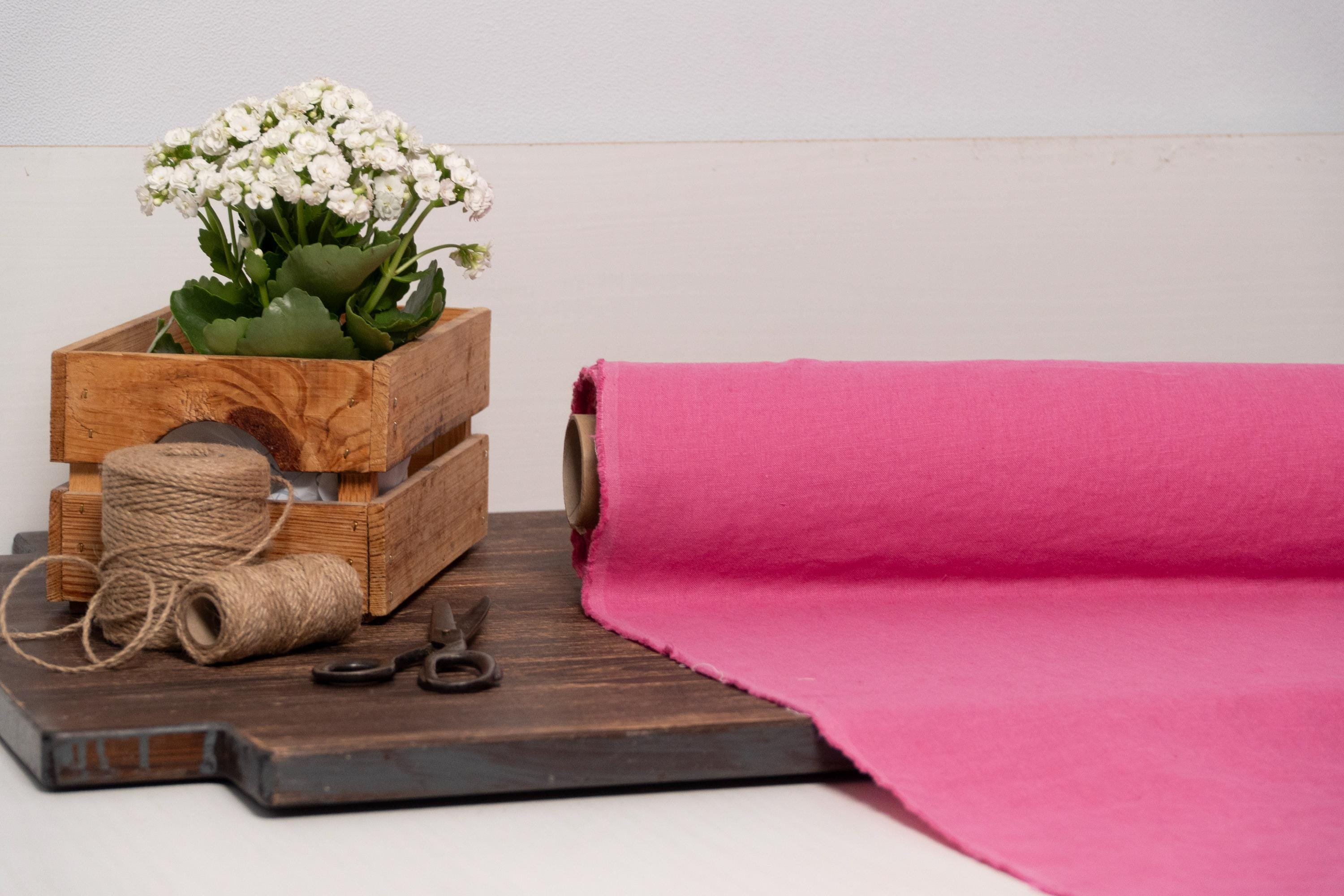 Bright pink linen fabric by meters or yards. Medium weight 6.05 oz/yd² / 205 g/m² linen fabric. This fabric is perfect for sewing kids and adult clothing, tablecloth, bedding, curtains and other various interior decorations.