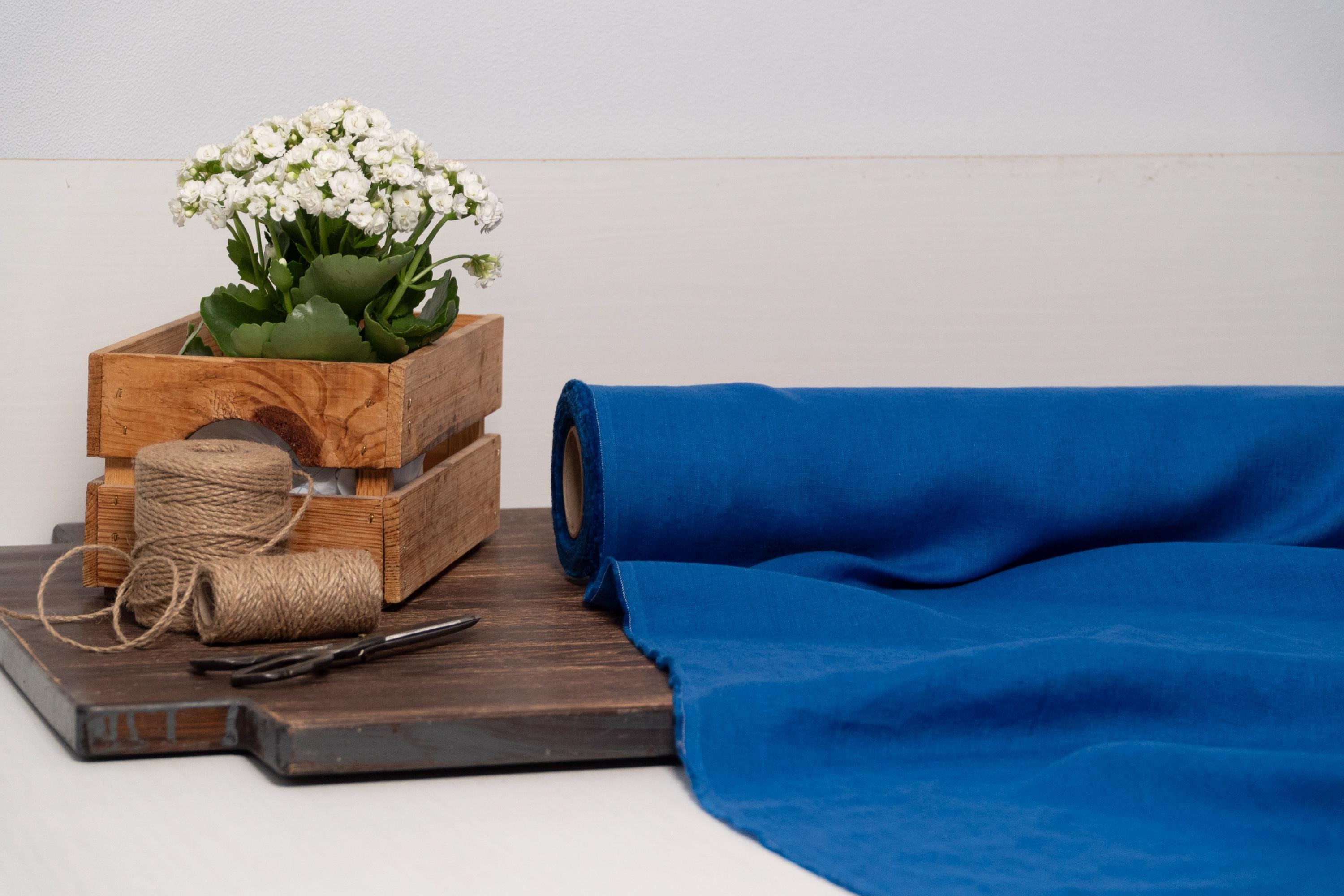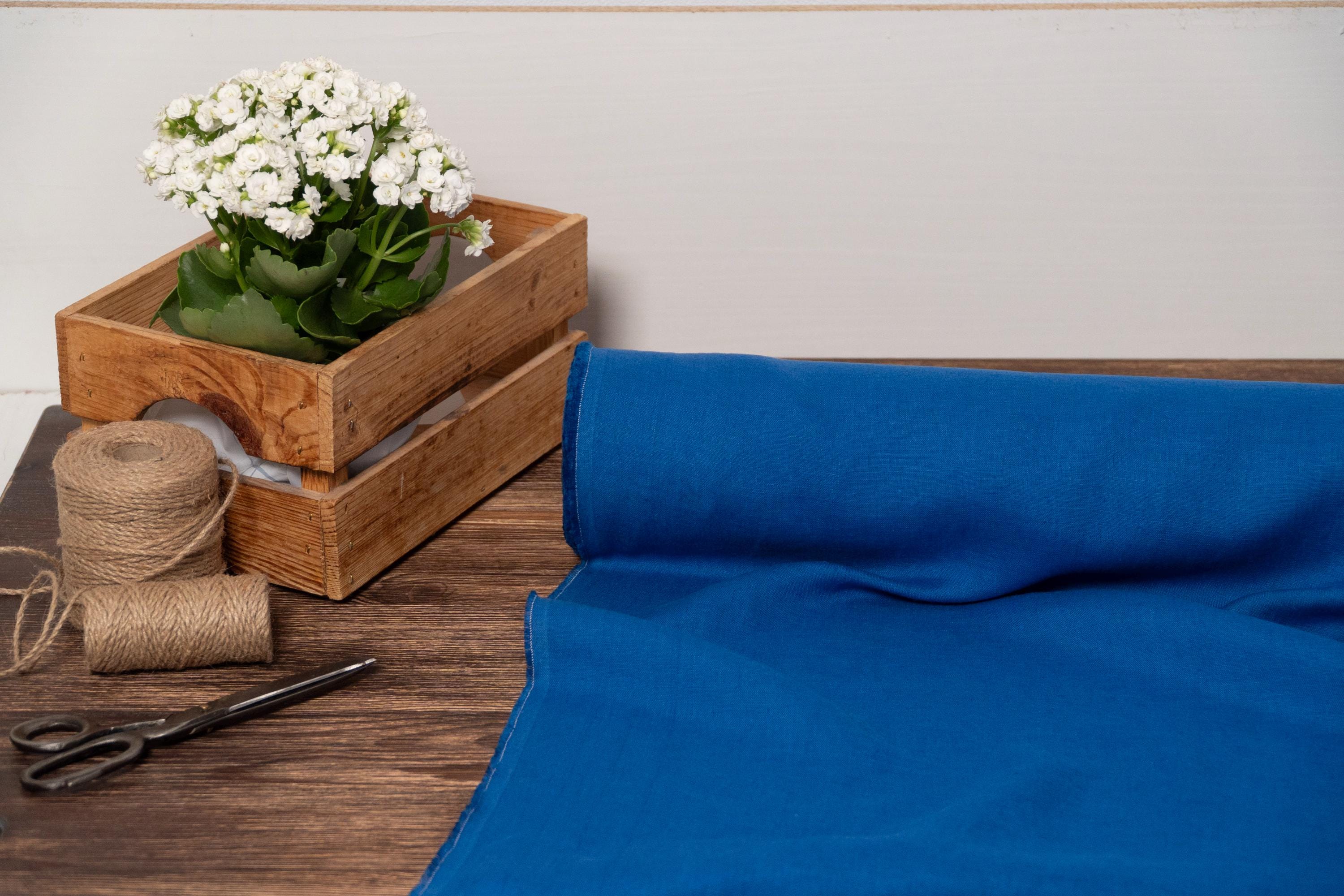 Sapphire blue linen fabric by meters or yards. Medium weight 6.05 oz/yd² / 205 g/m² linen fabric. This fabric is perfect for sewing kids and adult clothing, tablecloth, bedding, curtains and other various interior decorations.
