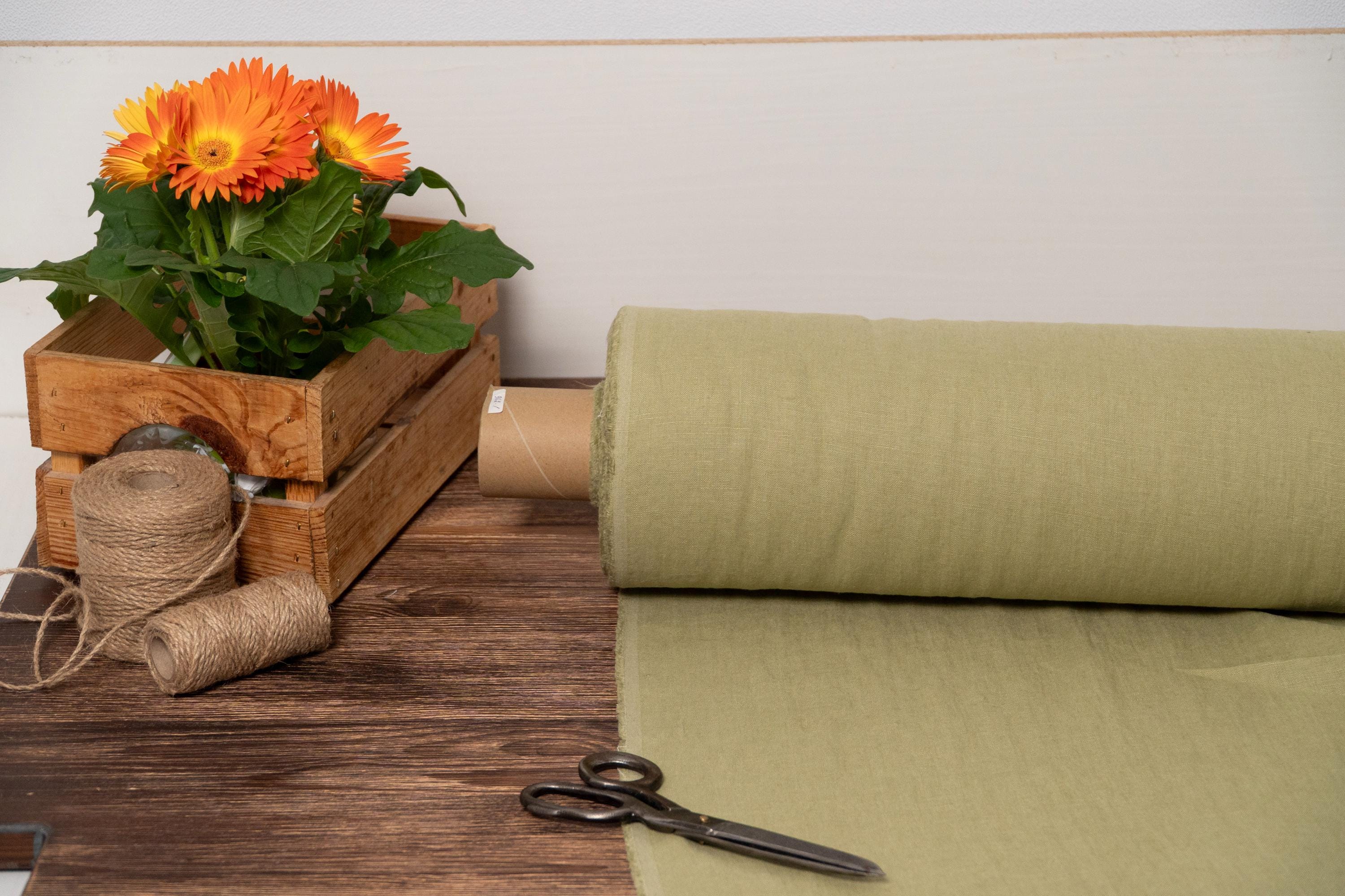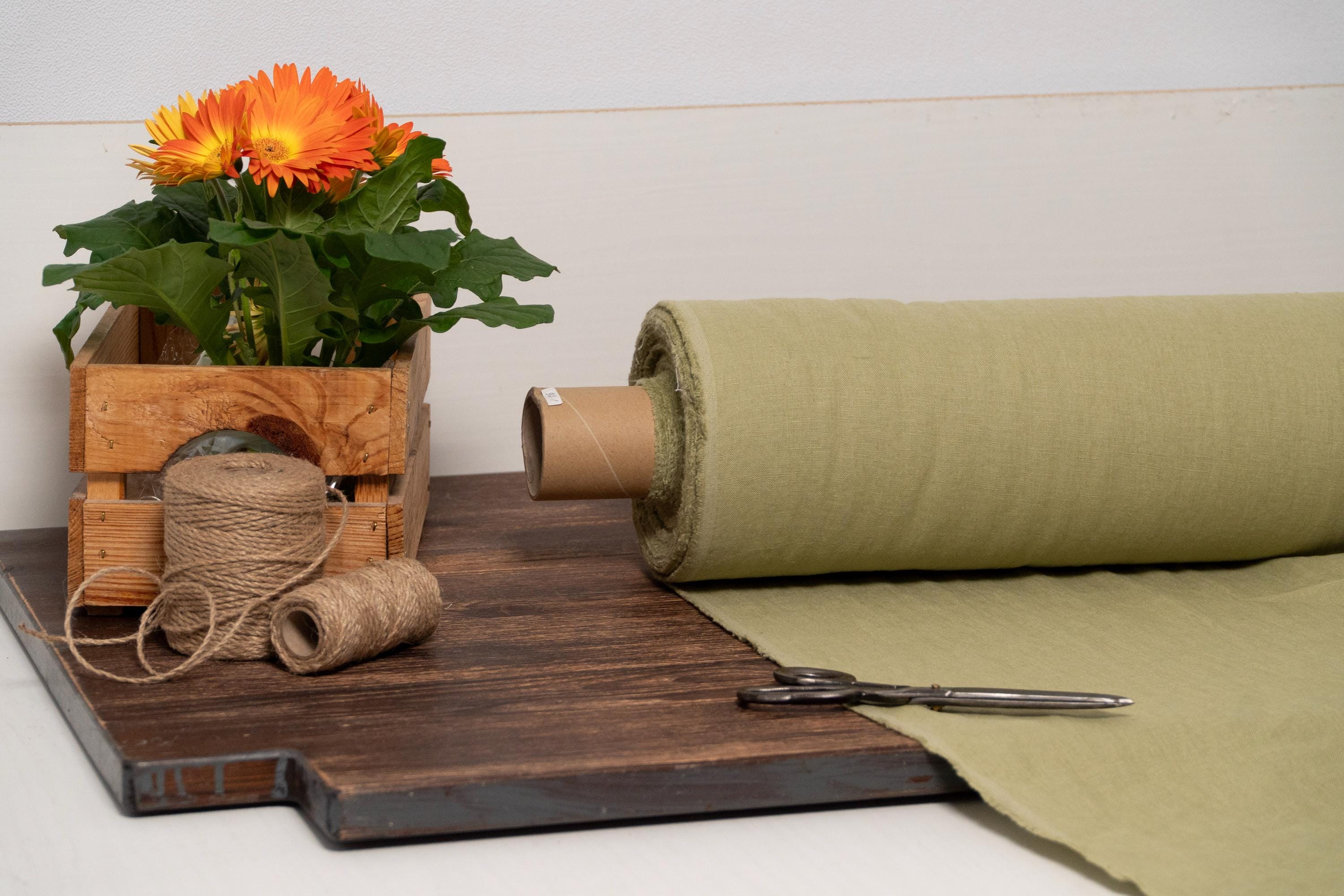 Dusty green linen fabric by meters or yards. Medium weight 6.05 oz/yd² / 205 g/m² linen fabric. This fabric is perfect for sewing kids and adult clothing, tablecloth, bedding, curtains and other various interior decorations.