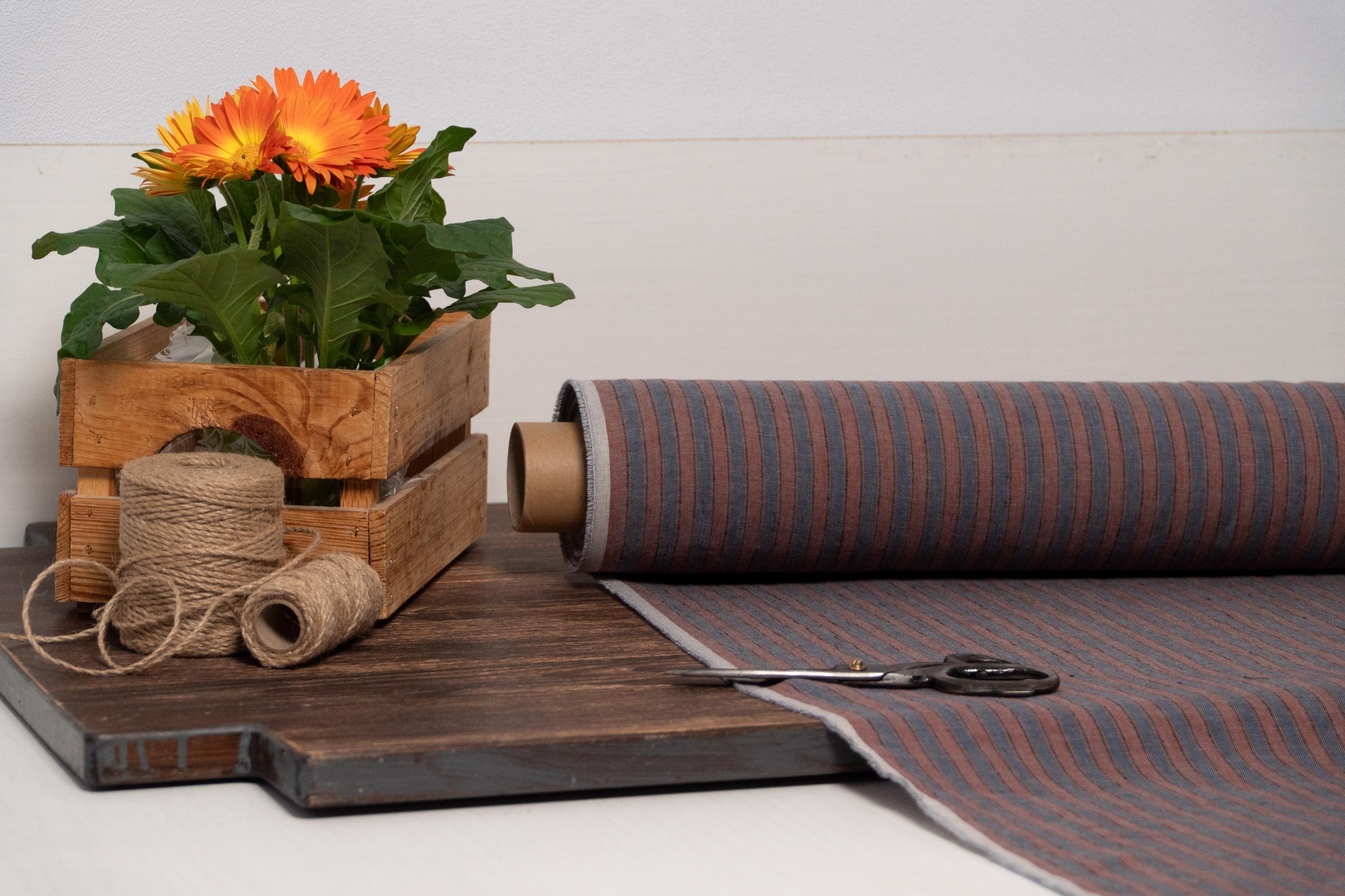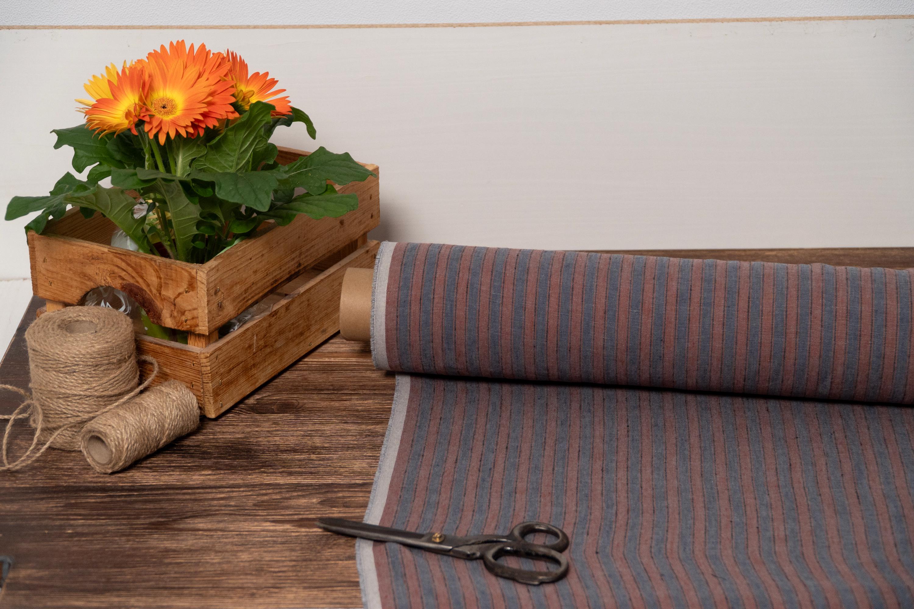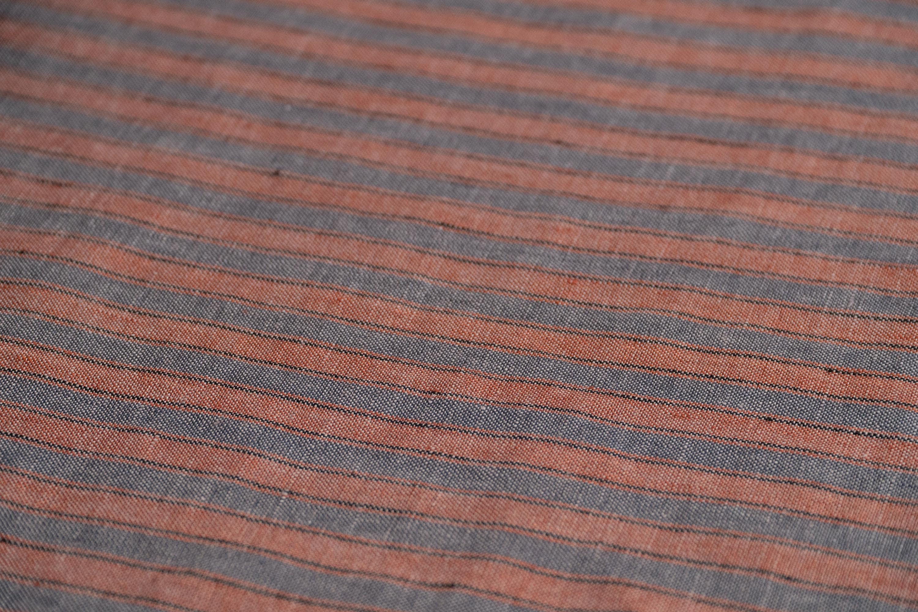 Blue with rust orange stripes linen fabric by meters or yards. Medium weight 5.60 oz/yd² / 190 g/m² linen fabric. This fabric is perfect for sewing clothing, table linen, bed linen, curtains and other various interior decorations.