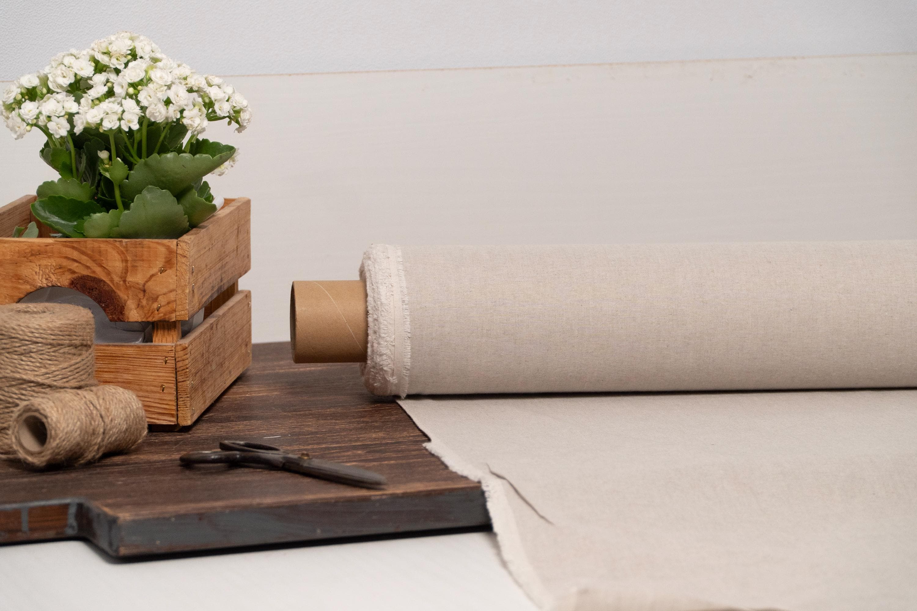 Natural undyed recycled linen blend fabric by meters or yards. Medium weight 6.05 oz/yd² / 205 g/m² linen fabric. This fabric is perfect for sewing clothing, table linen, bed linen, curtains and other various interior decorations