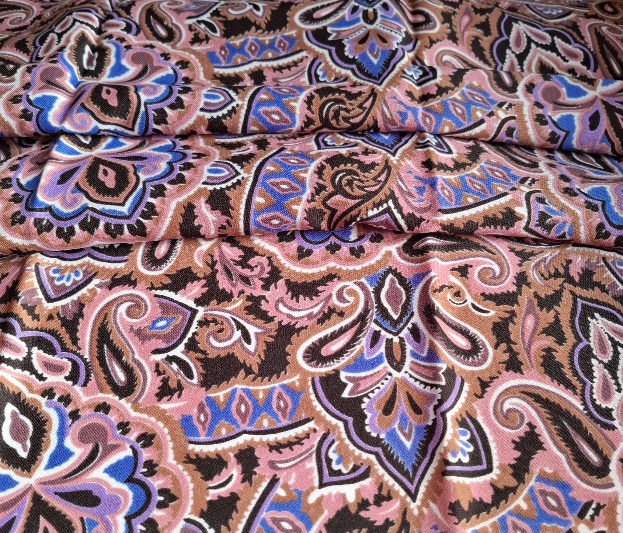 Vintage viscose fabric brown blue oriental pattern . Size of the piece 1.09 yards x 0.98 yards / 1 mx 0.9 m. Semi-synthetic fabric, which is used as a substitute for silk.