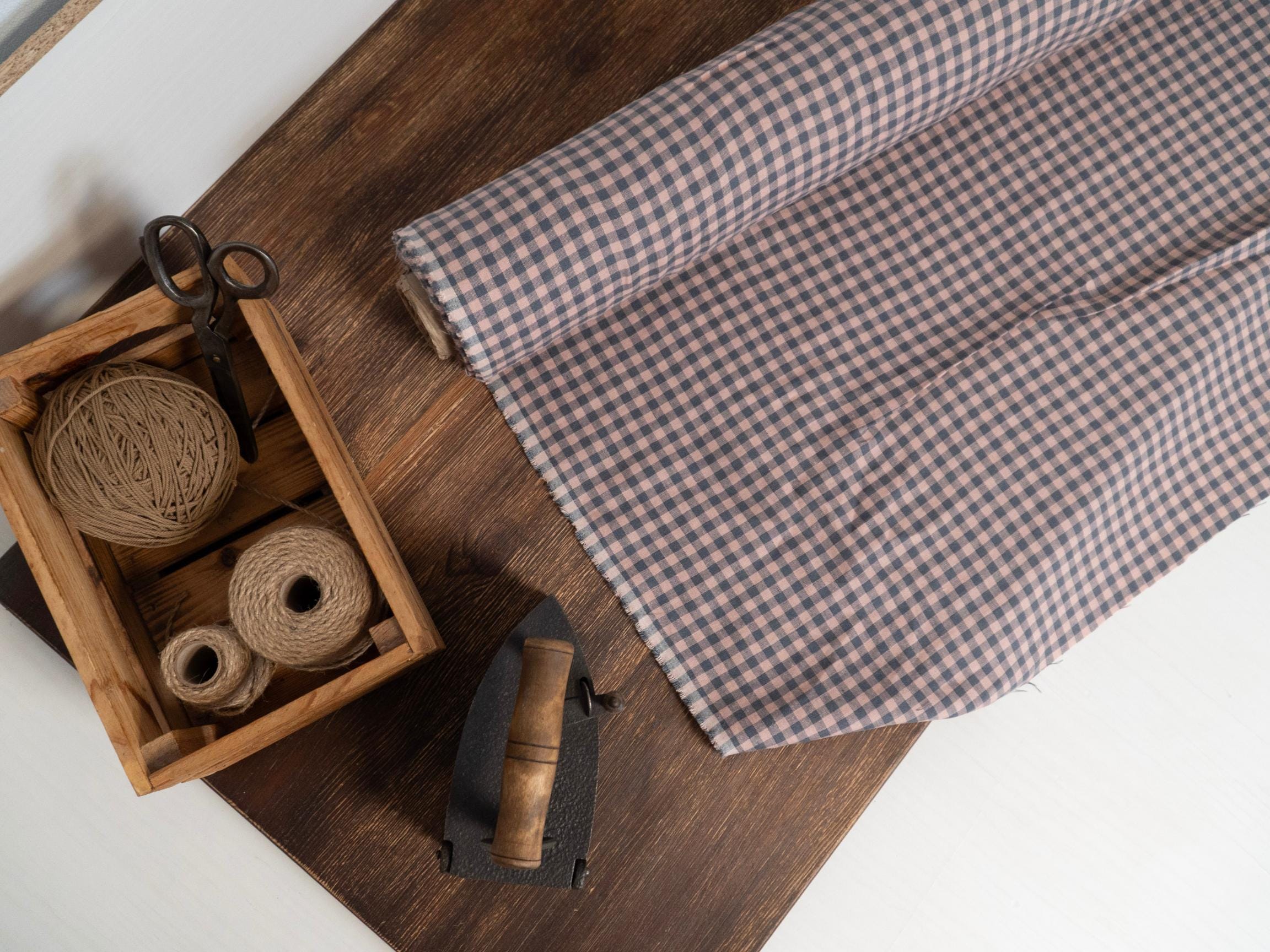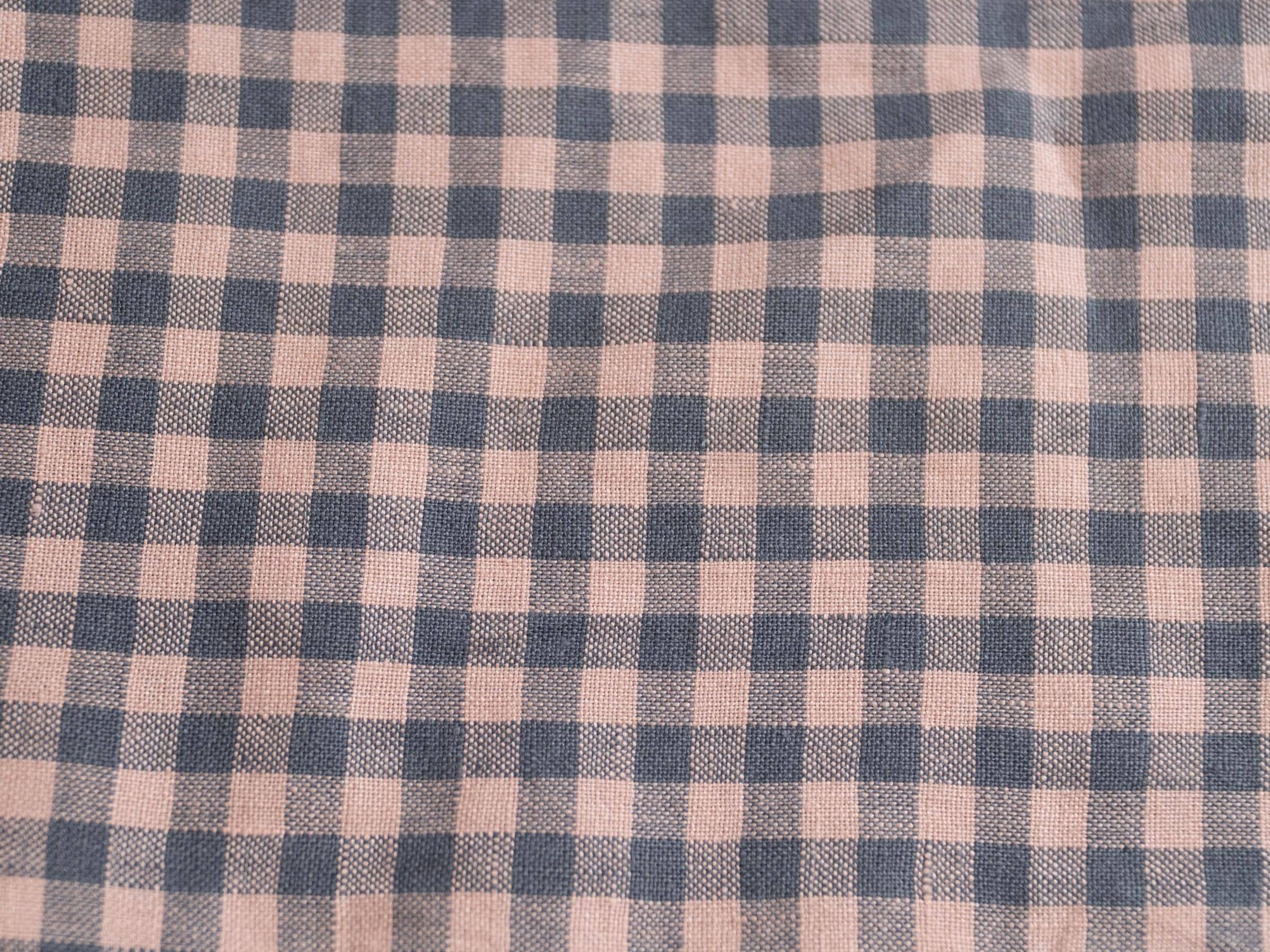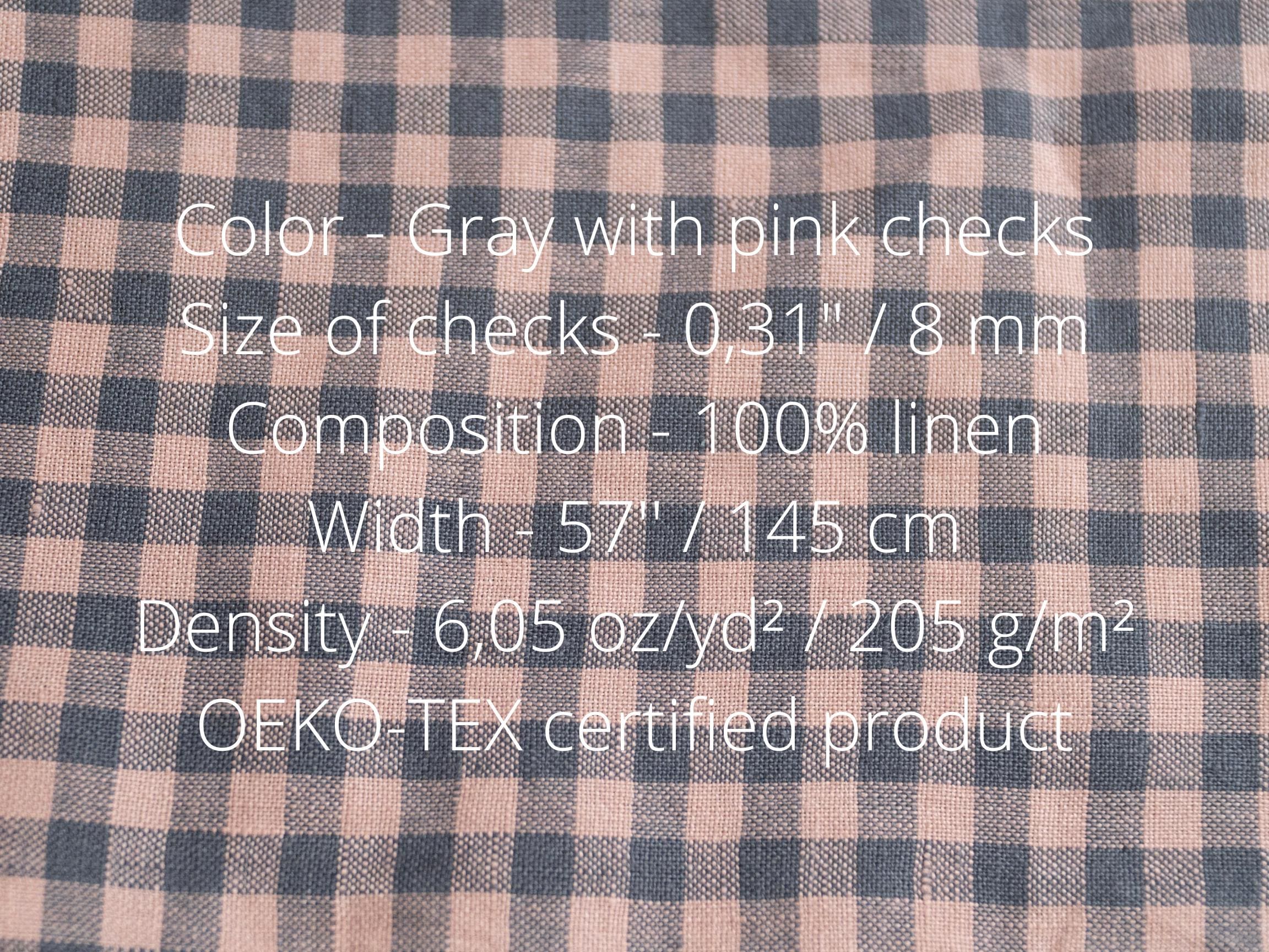 Linen fabric gray with pink checks by meters or yards. Medium weight 6.05 oz/yd² / 205 g/m² linen fabric. This fabric is perfect for sewing clothing, table linen, bed linen, curtains and other various interior decorations.