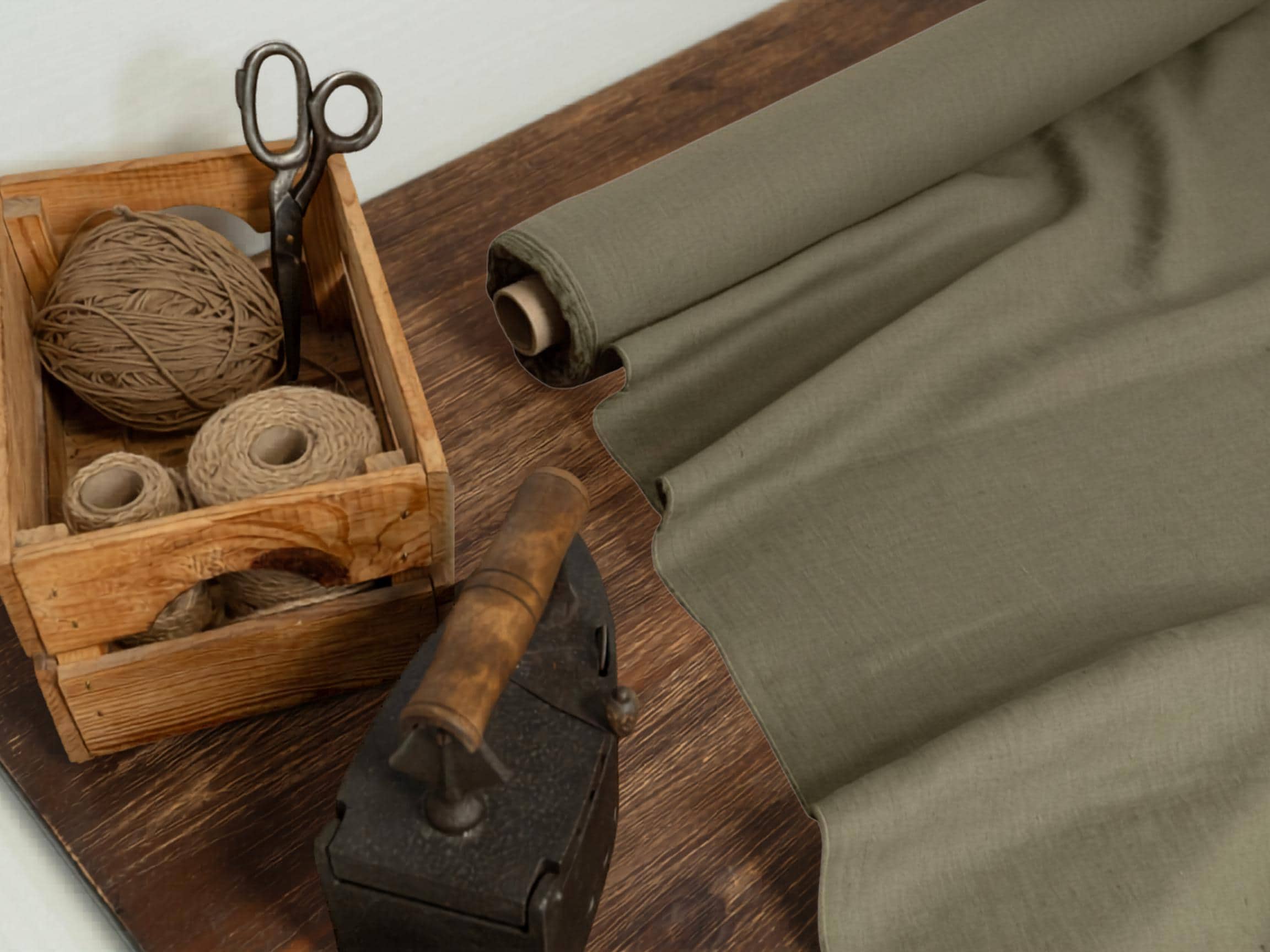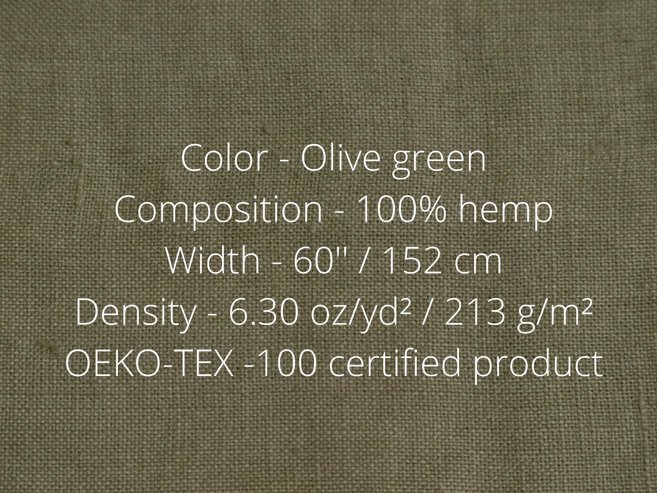 Olive green hemp fabric by meters or yards. Medium weight 6.3 oz/yd² / 213 g/m² hemp fabric. This fabric is perfect for sewing clothing, home textiles, curtains and various interior projects.