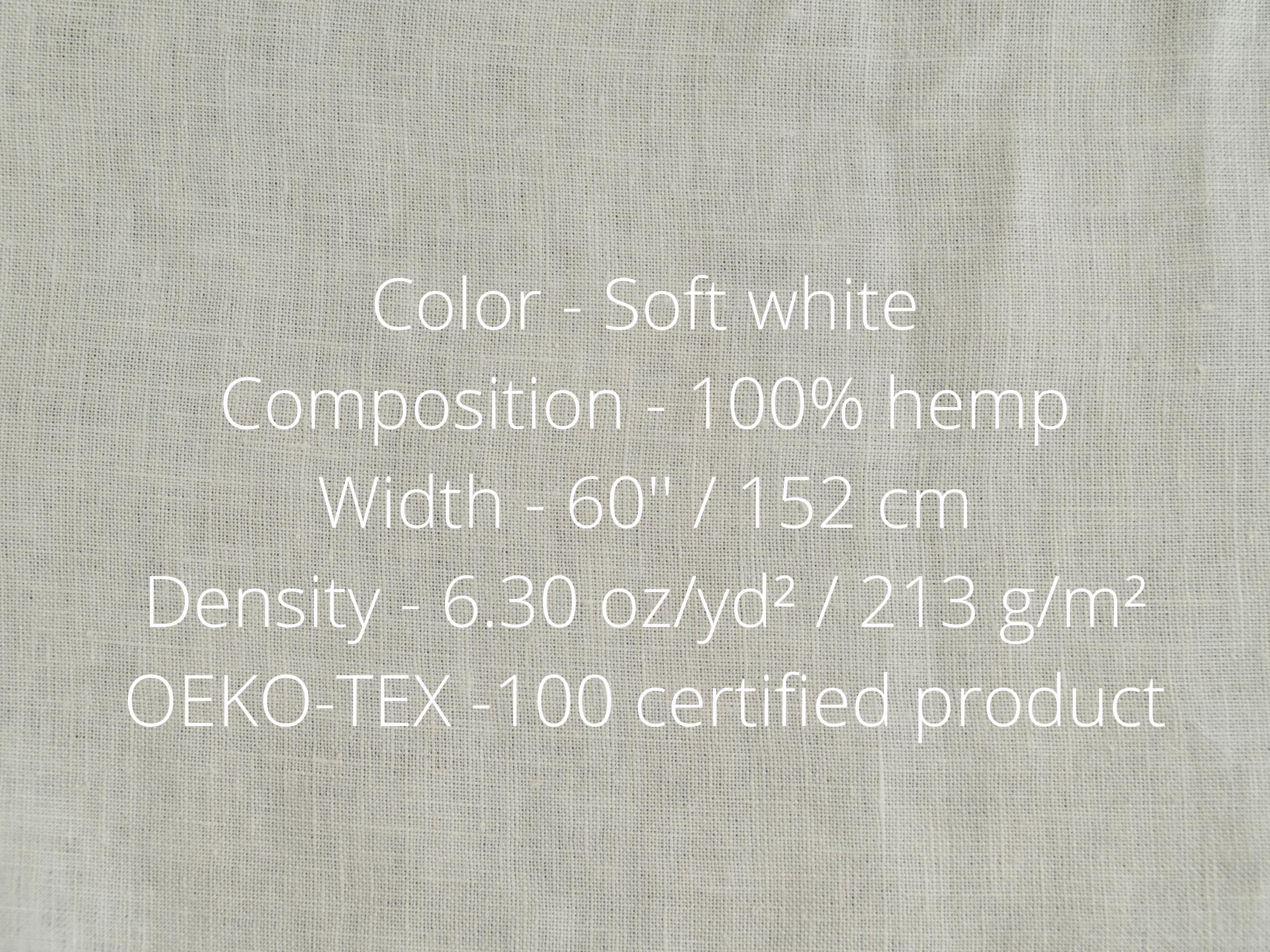 Soft white hemp fabric by meters or yards. Medium weight 6.3 oz/yd² / 213 g/m² hemp fabric. This fabric is perfect for sewing clothing, home textiles, curtains and various interior projects.