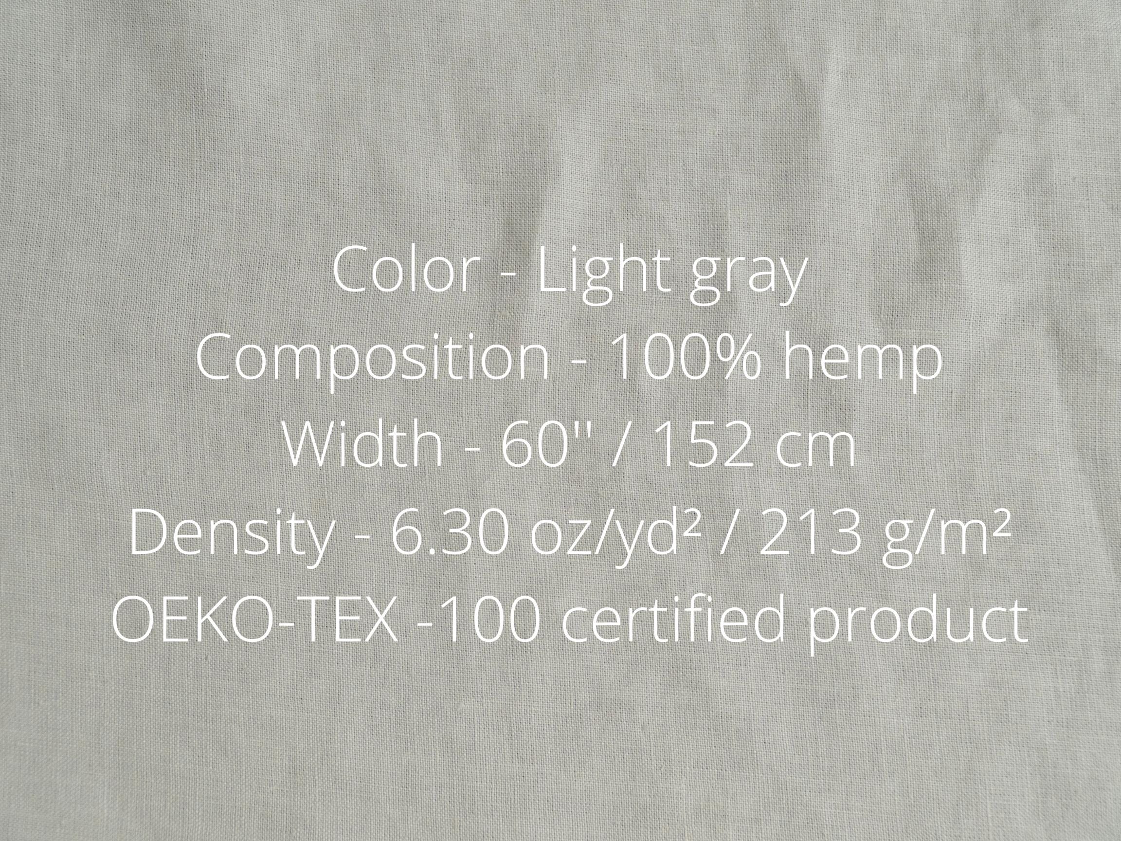 Light gray hemp fabric by meters or yards. Medium weight 6.3 oz/yd² / 213 g/m² hemp fabric. This fabric is perfect for sewing clothing, home textiles, curtains and various interior projects.