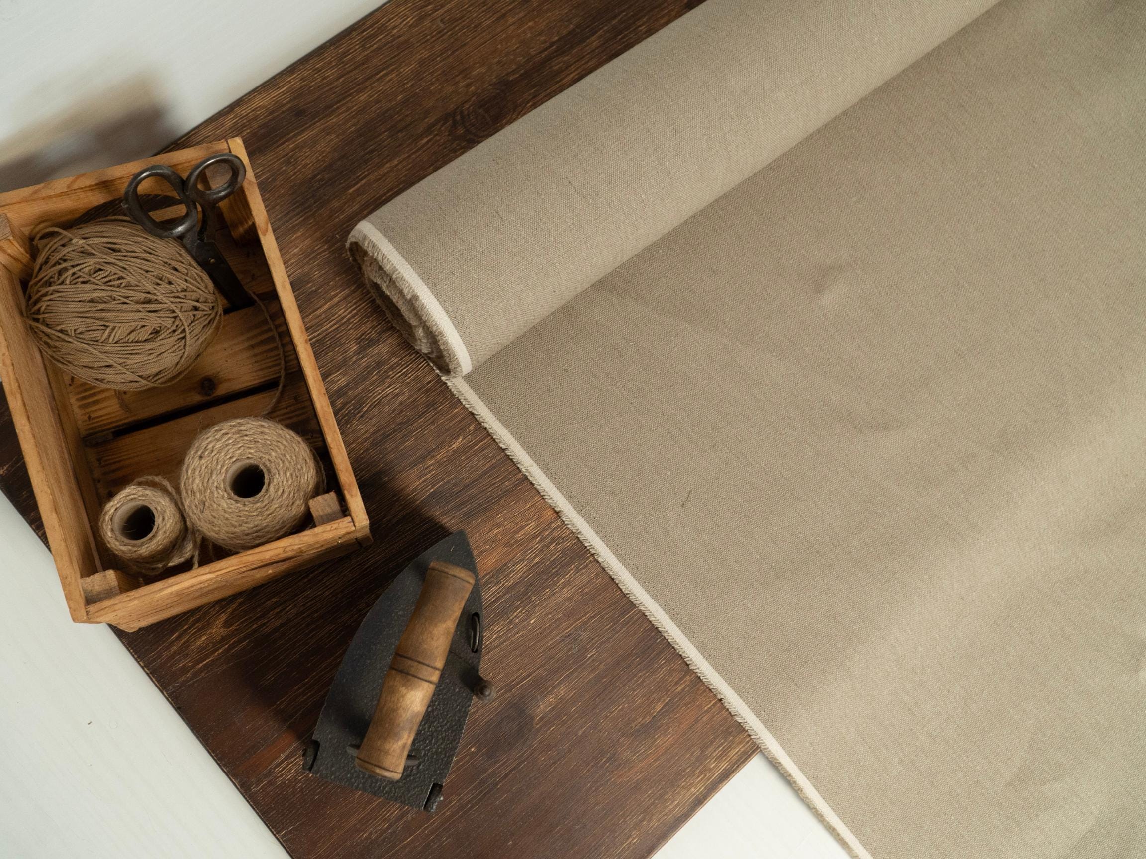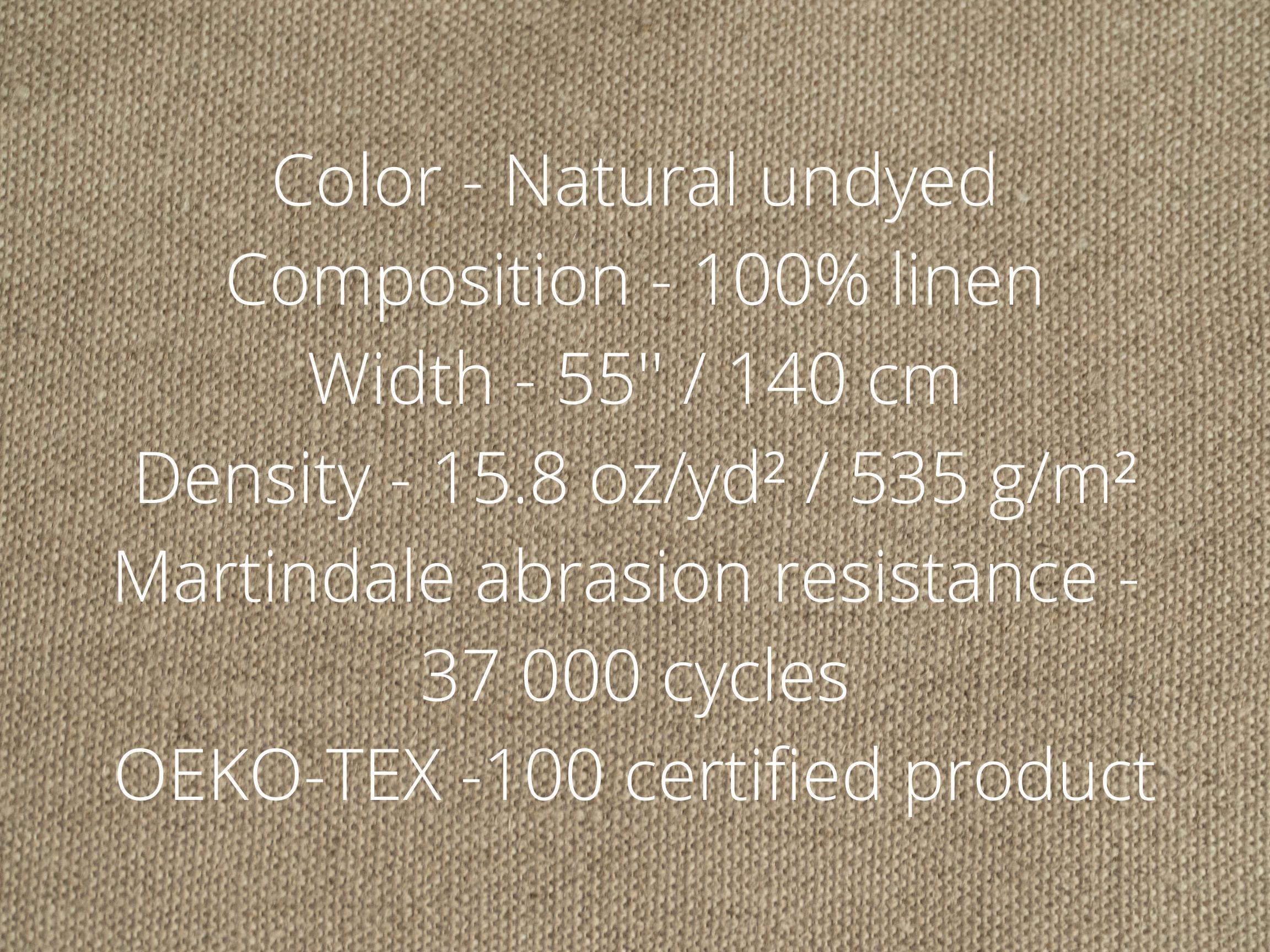 Natural linen upholstery fabric by meters or yards. Heavyweight 15.8 oz/yd² (535 g/m²) linen fabric designed for upholstery projects such as sofas, chairs, cushions and other heavy-use interior applications.