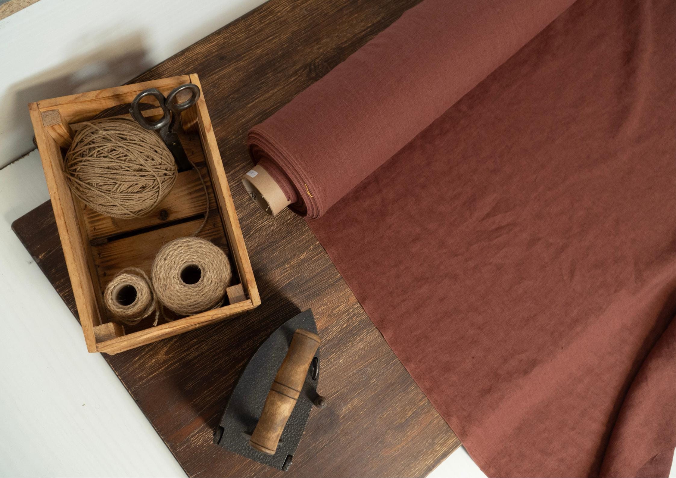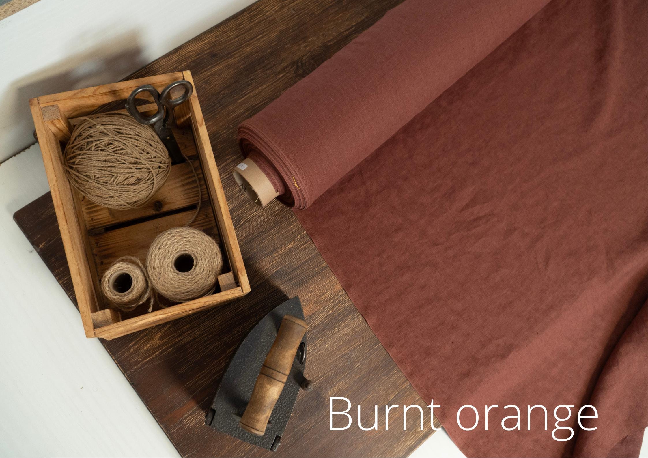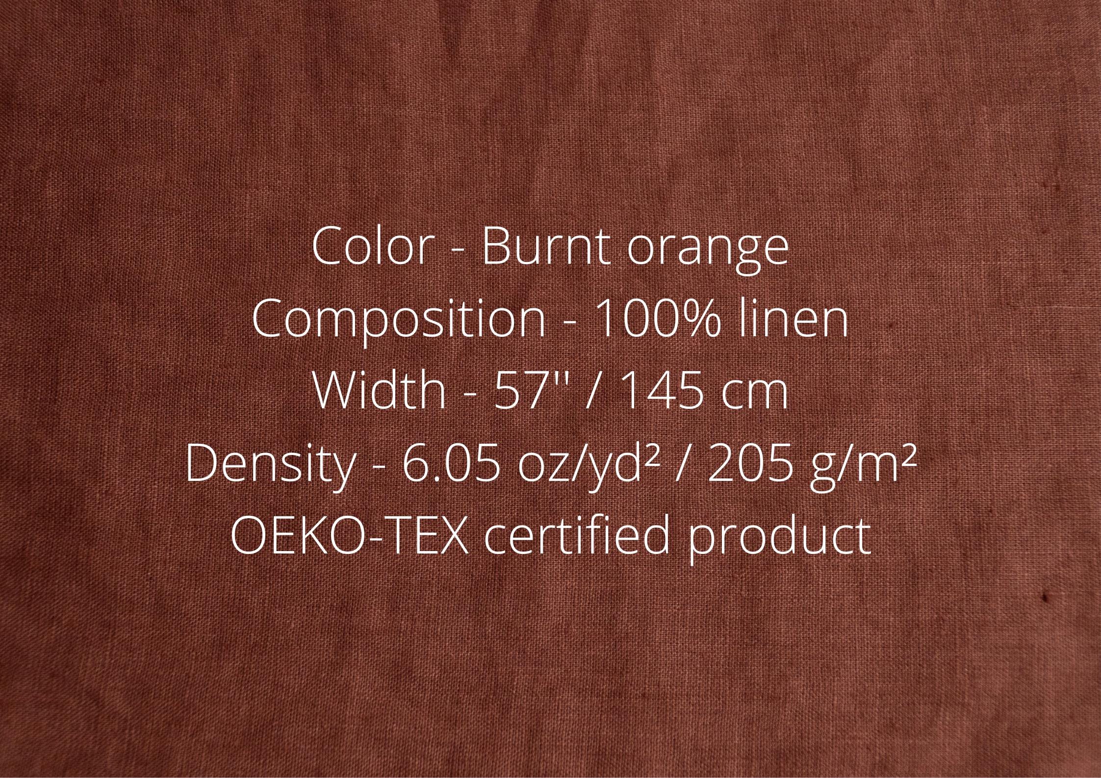 Burnt orange linen fabric by meters or yards. Medium weight 6.05 oz/yd² / 205 g/m² linen fabric. This fabric is perfect for sewing clothing, table linen, bedding, curtains and various interior projects.