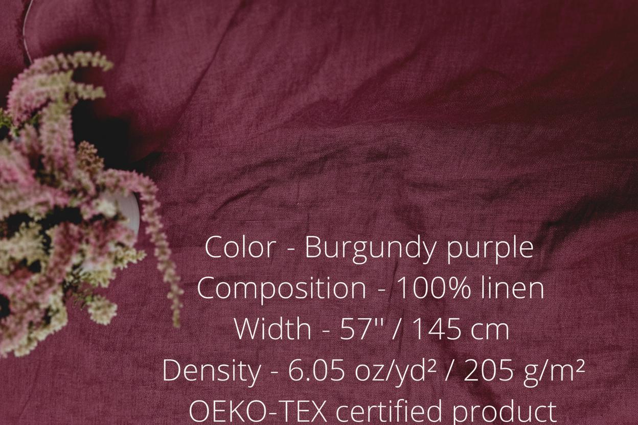 Burgundy purple linen fabric by meters or yards. Medium weight 6.05 oz/yd² / 205 g/m² linen fabric. This fabric is perfect for sewing clothing, table linen, bed linen, curtains and other various interior decorations.